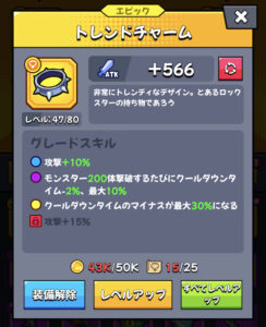 今回はオススメ装備の1つ、トレンドチャームと攻撃速度についてご紹介します。
