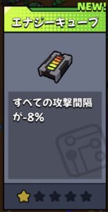 ガトリングや手裏剣のような攻撃の待ち時間がない武器にエナジーキューブやトレンドチャームのような攻撃間隔の短縮は効果が無いようですね。