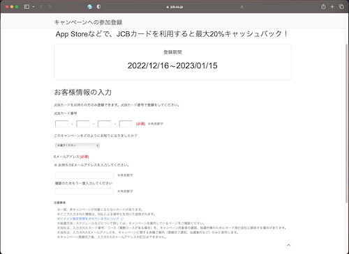 参加方法はまず対象のJCBカードの番号をキャンペーンサイトで登録