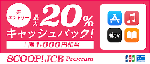 App Storeなどで、JCBカードを利用すると最大20%キャッシュバック!