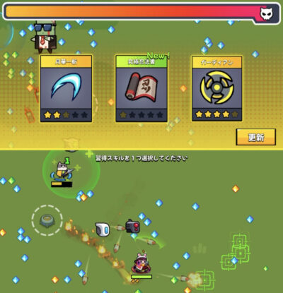 レベルアップ時のスキル選択ではポーズがかからないので、手早く選択しましょう