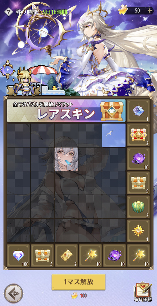ミッションをクリアしてパズルの欠片を入手するとランダムでパネルが開きます