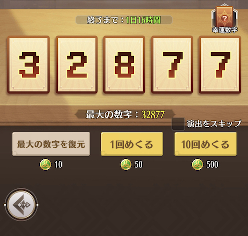 カードめくりは期間中に大きい数字を出して上位入ると賞品がもらえます