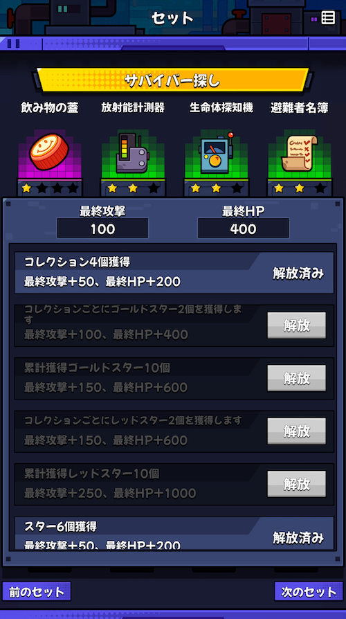 - コレクション4個獲得: 最終攻撃+50、最終HP+200