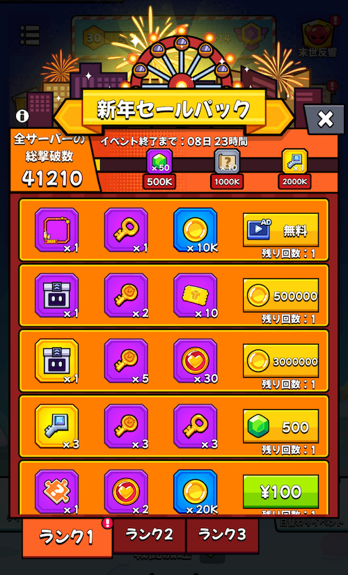 早速ですか、ダダサバイバーの新年のセールイベントが開催されています