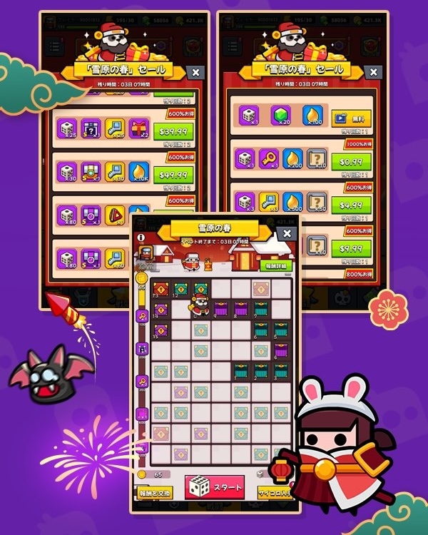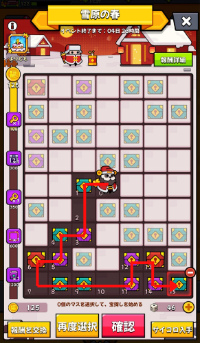 - サイコロを振って進み、通過した箇所の全ての箱から報酬を獲得