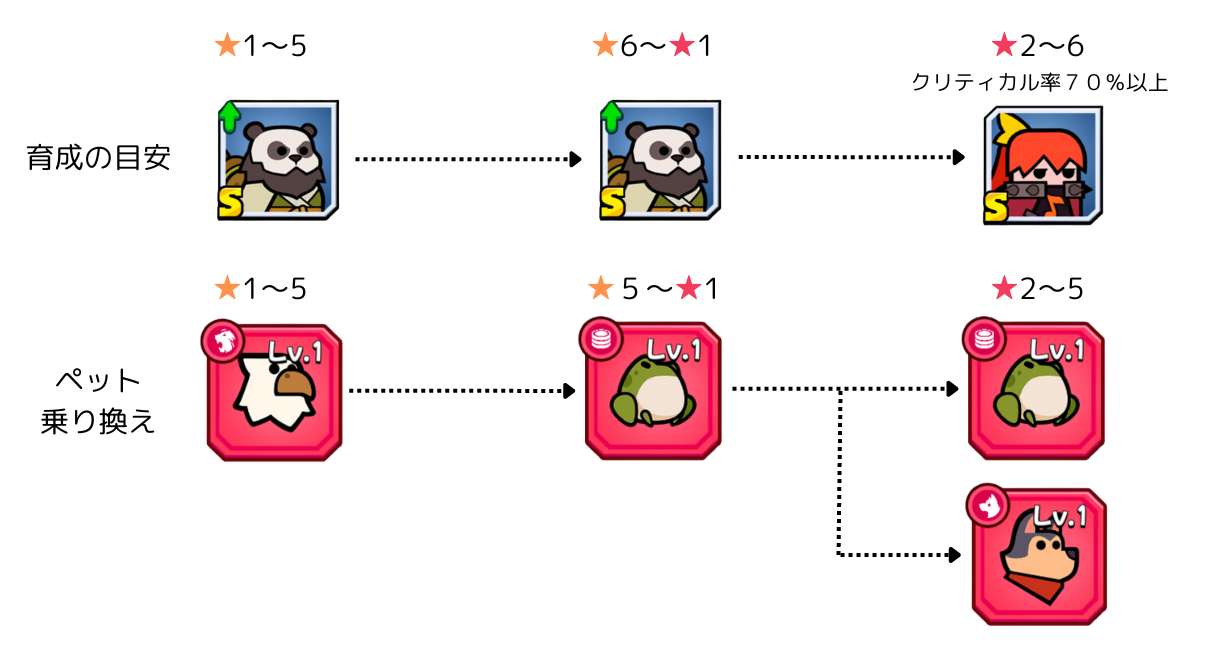 - サバイバー星6あたりでペットの火力不足が目立つようになるので、防御デバフをかけるカエルにする