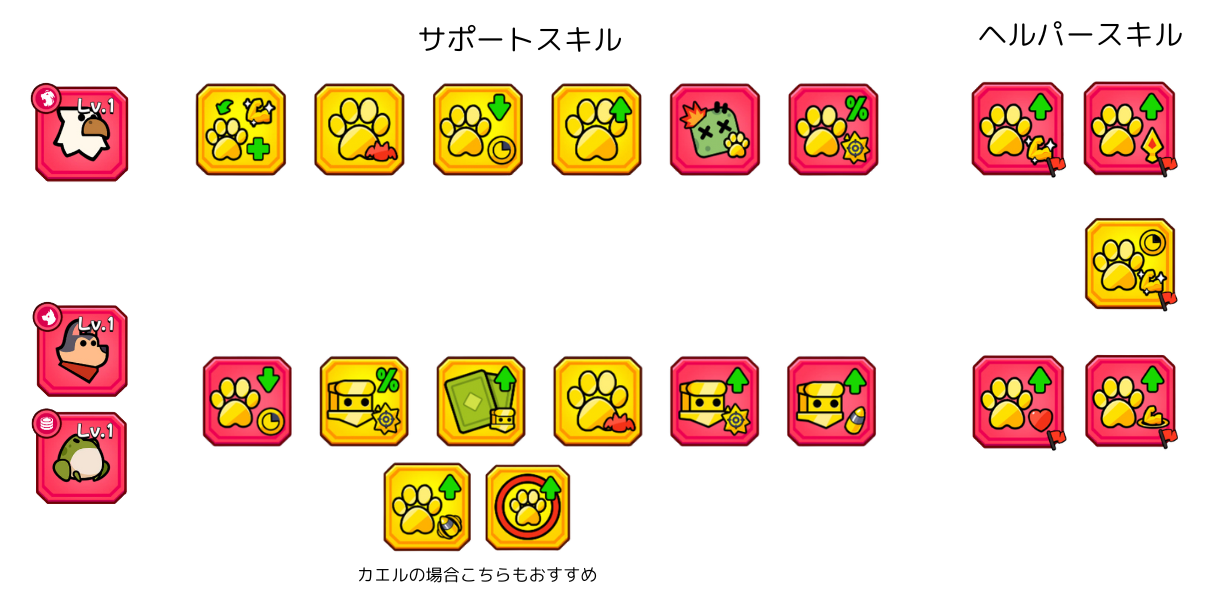 ハチ公とカエル自体の火力は期待できないので、サバイバー支援スキルや生存能力が上がるスキルを付けると良いでしょう