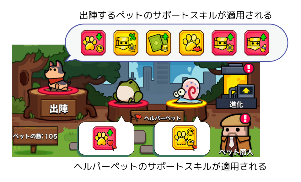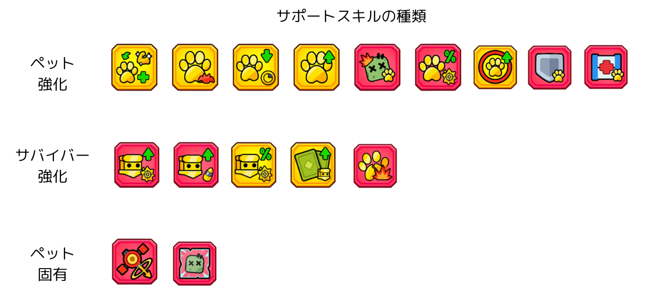各ペットを赤まで育成することで、装備できるスキルの種類が増えます
