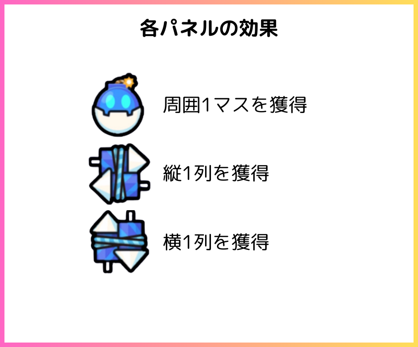 - ロケット(縦・横):それぞれ縦一列、横一列を獲得