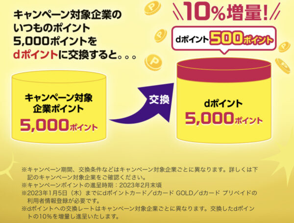 この期間に他社ポイントをdポイントに交換するとポイントが増えるのです!