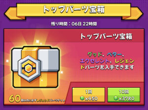 テックパーツガチャと同じ排出率なら24個のランダムパーツ宝箱(最高級)から金0〜1 紫2〜3 青10〜11 緑9〜10くらいの感じになります