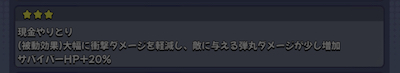 星アップで開放できる星3スキルは、敵にぶつかった時のダメージが軽減され、敵に与える弾丸ダメージが増加します