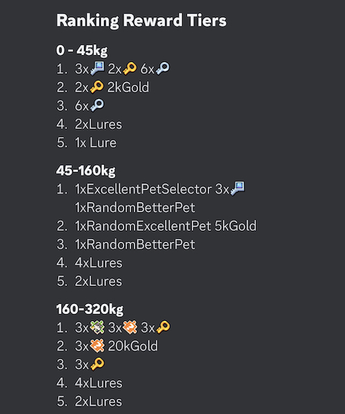 釣りポイントとの交換は釣り上げた累積KGが増えると報酬が豪華になるみたいだね