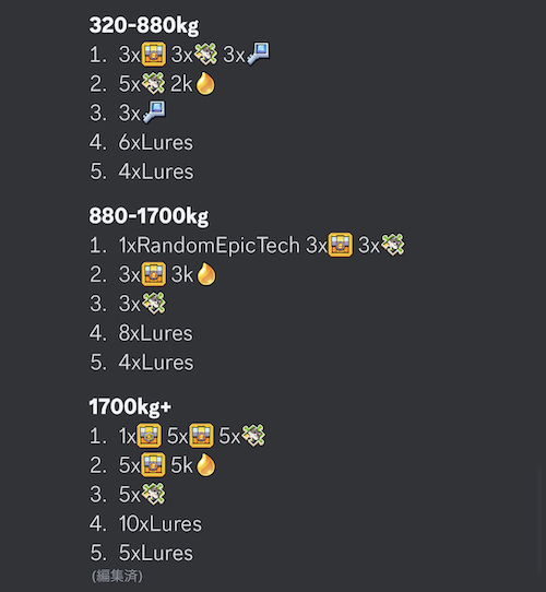 確率は表記されていませんが、レア魚が釣れる確率はおおよそ2〜3%ほどと言われていますね