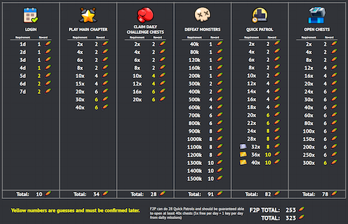 『任意の宝箱開封回数』は徐々に必要回数が増加していくので、鍵は少ない方は60回あたりを目安に行うと良いです