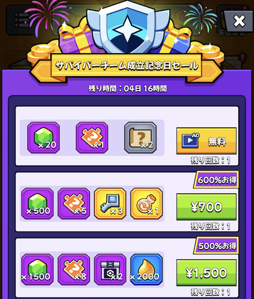 購入をすることで少しづつ報酬が豪華になっていく、セールイベントです