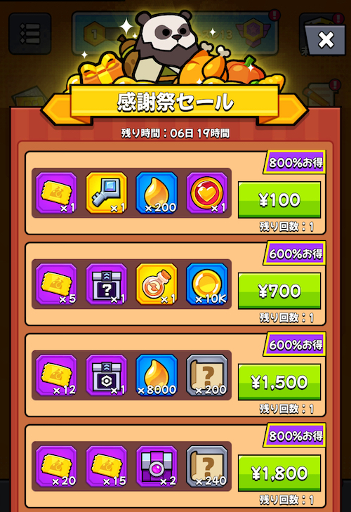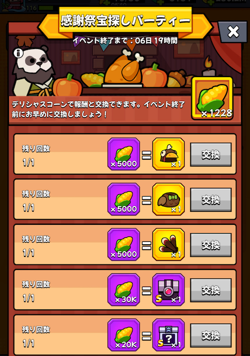課金で購入できるチケットを全て購入しても938枚なので、ターキーおよそ75個分ということになりますね