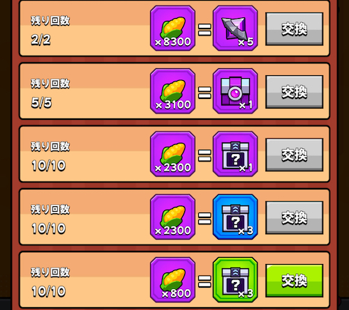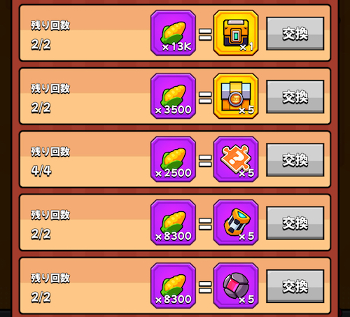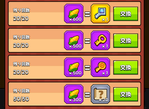 手に入れたデリシャスコーンと報酬を交換しましょう