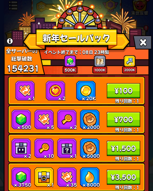 15000円のパックが充実してるので、ギルド遠征や末世反響でのスコア争いは過熱しそうです