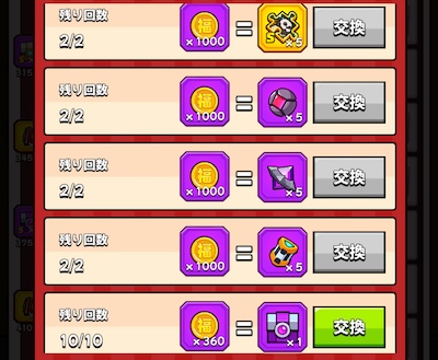ラッキーコインを集めると以下のような累計報酬がもらえます