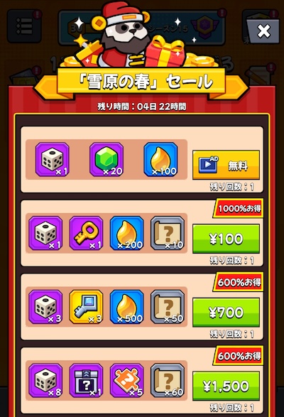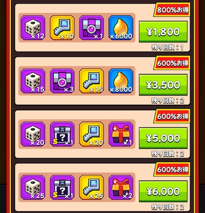 - サイコロを振って進み、通過した箇所の全ての箱から報酬を獲得