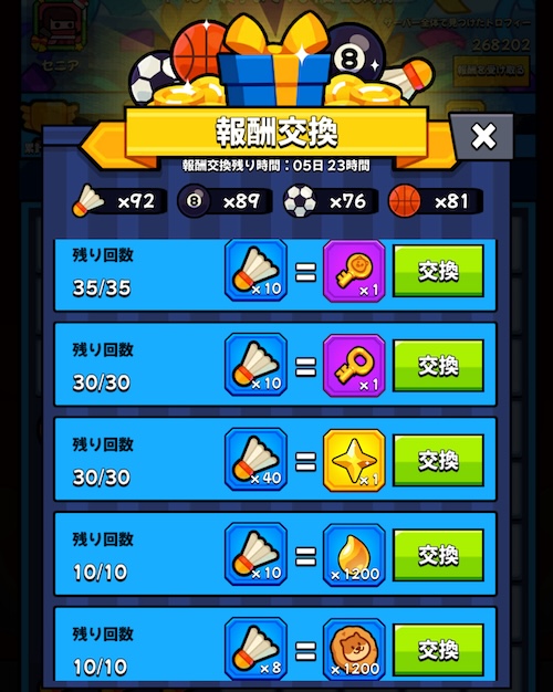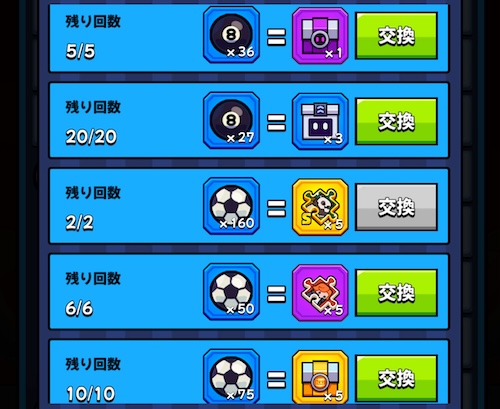 あとは全ボール回収によって交換できる報酬が違うので、エナジードリンク節約のためにもある程度欲しいボールを絞ることも必要かもしれません