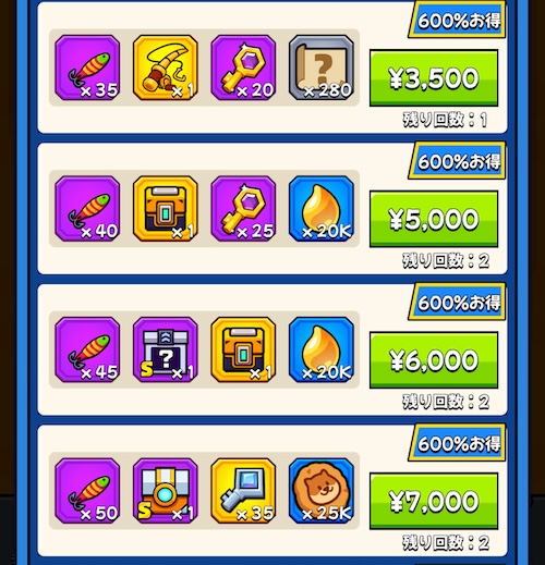竿によってレア魚の確率が変わるといったことはなさそうなので、お財布事情と相談して課金しましょう