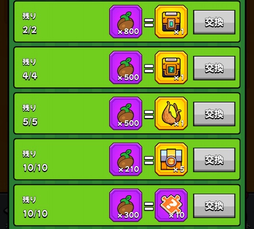 とりあえず期間限定コレクションのエナジーシードは交換しておきましょう