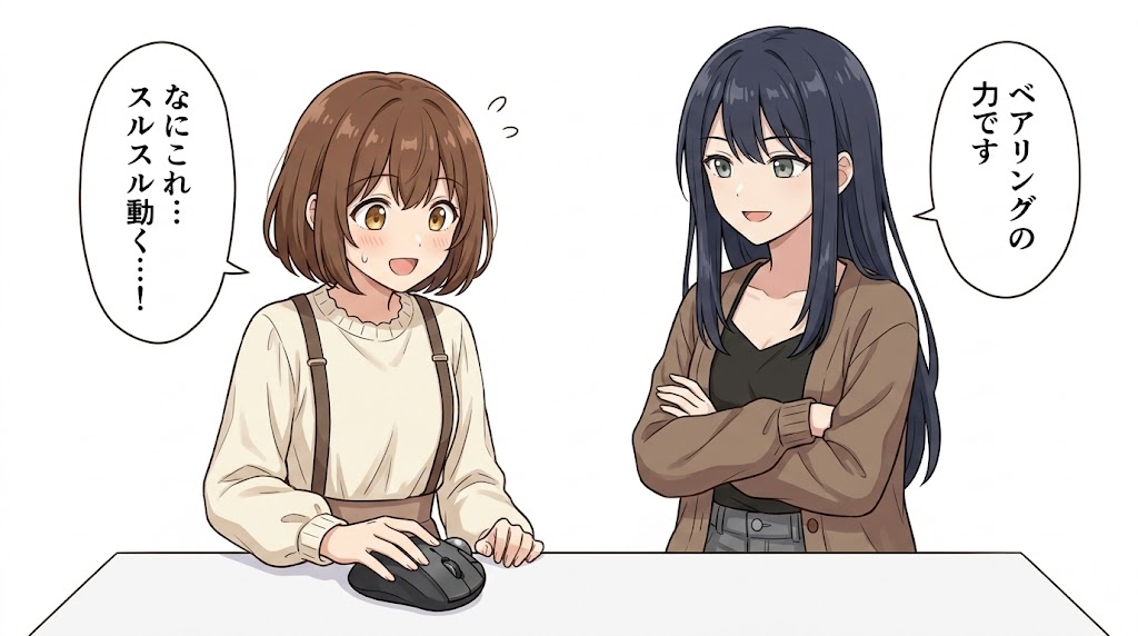 ルビータイプは中にゴミがたまりやすくて、定期的にボールを外して掃除する必要があったんです。ベアリングはゴミがたまりにくく、ボールがスルスル動く快適さがずっと持続します。